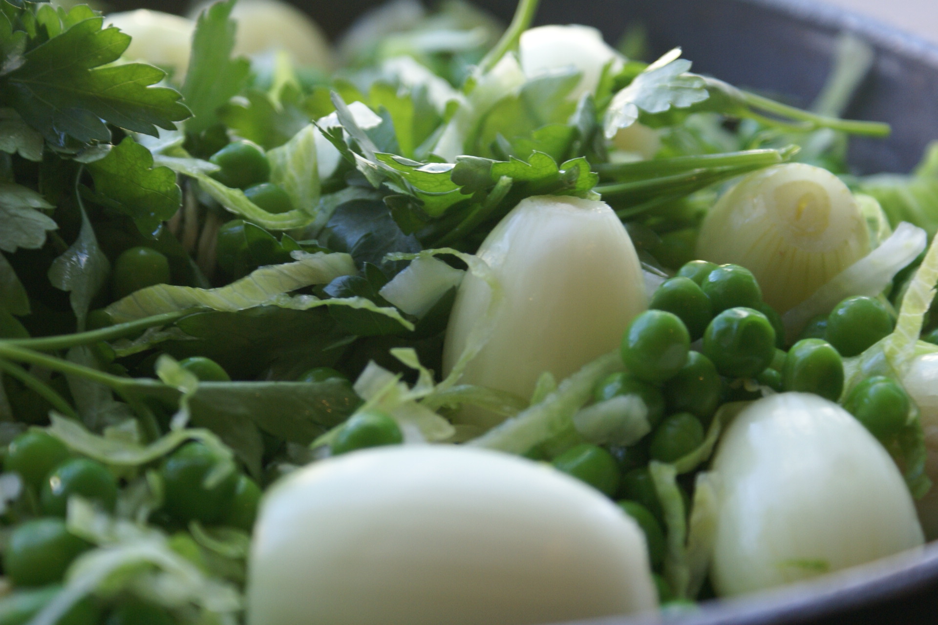 I was determined to sous vide these two golden beauties and serve them on a nest of crushed minted peas and prosciutto with some little toasts. I do not have one of those fancy and very expensive sous vide water baths and I could not find a recipe … so I had to improvise. With a pot of hot water covering my eggs – it took me 2.5 hours at 62°C – sitting by my stove with an electronic thermometer in hand to ensure that the water temperature remained constant. I added cold water when the temperature went up. It took some time and some doing but it was worth every single minute. The thick golden yellow yolk that oozed out of this perfectly boiled eggs was like liquid gold …and something you just have to try once in your life. The perfect combination of the sweet peas and then the salty prosciutto and a scoop of the golden yolk on a crispy cut of toast are just absolutely from another planet. Of course, the dish was not complete without a sprinkle of salt and freshly grounded white pepper.